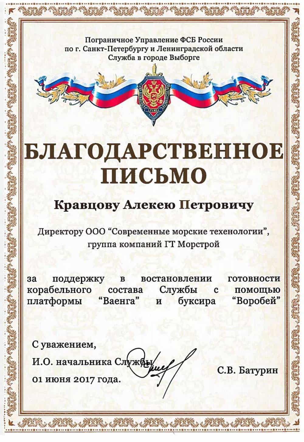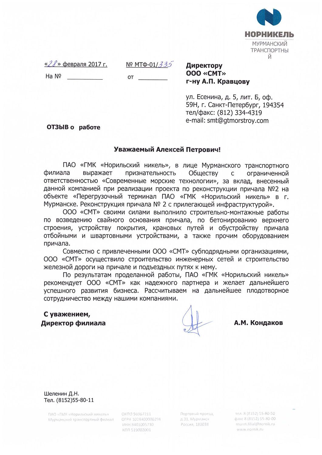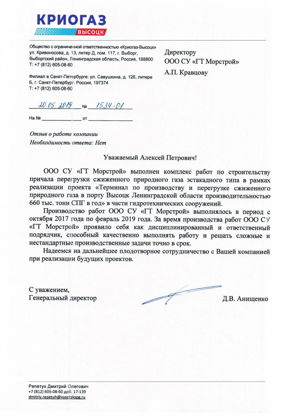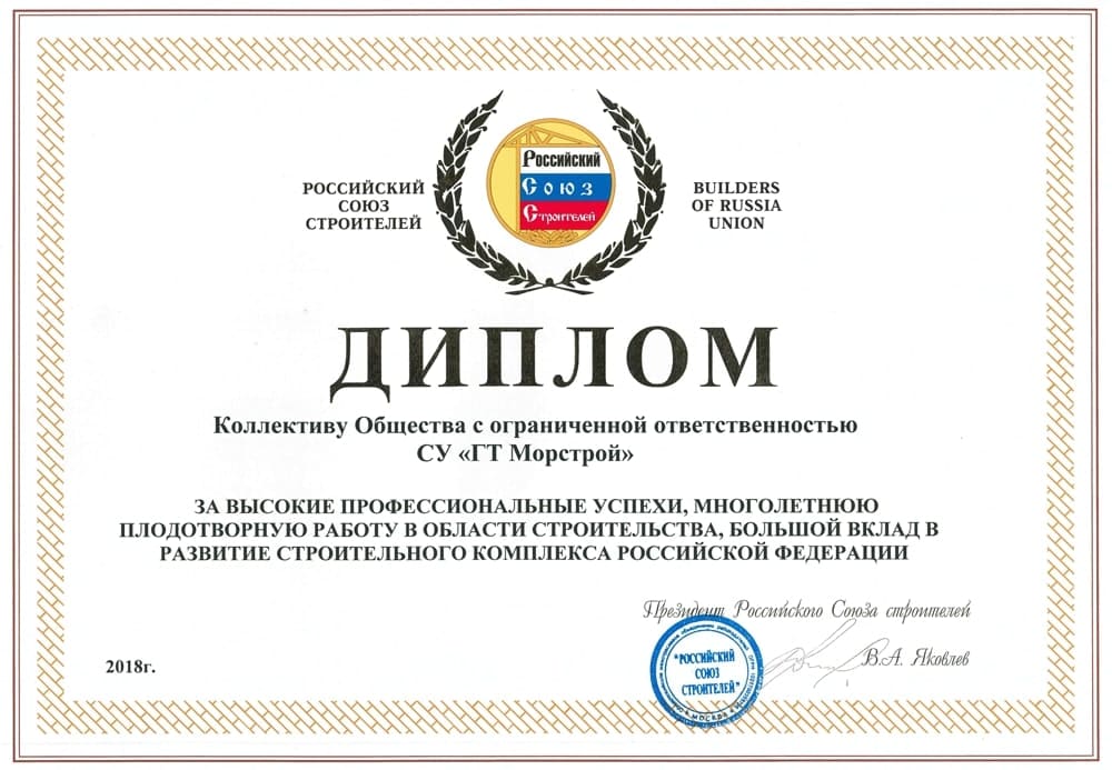 For completion of a complex of works on construction of quay within the scope of project «Terminal for LNG production and transshipment in Vysotsk port, Leningrad oblast».